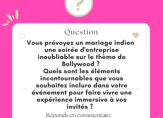 Aidez-nous à mieux vous connaître pour mieux vous satisfaire! 😉 Vous prévoyez un mariage indien – une soirée d’entreprise inoubliable…