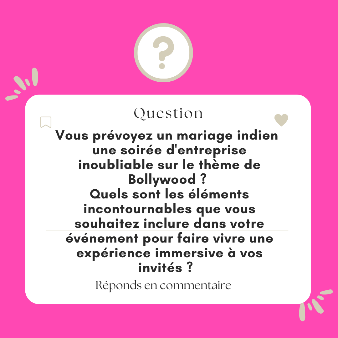 #mariage #bollywood #événementiel #danse #musique #décoration #tradition #Inde #mariageàthème #organisateurevénementiel #fête #joie #créativité #équipeengagée #SoiréeEntreprise #OrganisationÉvénements #ExpérienceClient #AmbianceFestive